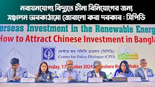 নবায়নযোগ্য বিদ্যুতে চীনা বিনিয়োগের জন্য সঞ্চালন অবকাঠামো জোরালো করা দরকার : সিপিডি